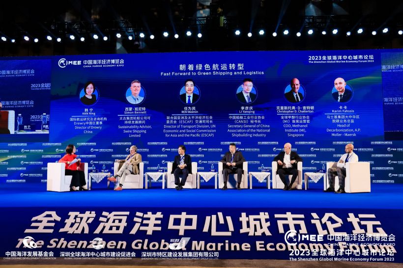 “朝着绿色航运转型”全体会议由国际航运研究及咨询机构Drewry中国区董事韩宁主持,中国船舶工业行业协会秘书长李彦庆,联合国亚洲及太平洋经济社会委员会交通司司长任为民,英国太古集团轮船公司可持续发展顾问西蒙·班尼特,全球甲醇行业协会首席运营官克里斯托弗·D·查特顿,马士基集团大中华区脱碳业务总监卡卡为发言嘉宾。