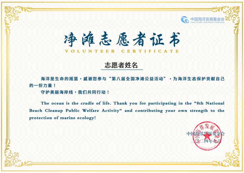图为净滩志愿者证书样式