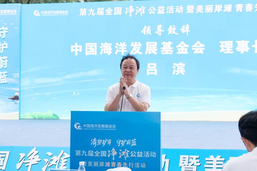 吕滨理事长在致辞中指出,通过全国净滩公益活动,人海和谐、水清沙净的美丽愿景逐渐成为现实,更多的青少年认识海洋、热爱海洋,公众环保意识和行为习惯显著改善,越来越多的社会力量参与到海洋公益活动当中,共同为建设美丽中国、美丽岸滩增添了一抹亮色。