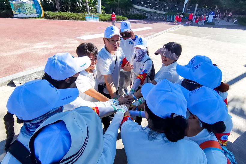 图为惠州志愿者活动前相互鼓劲加油
