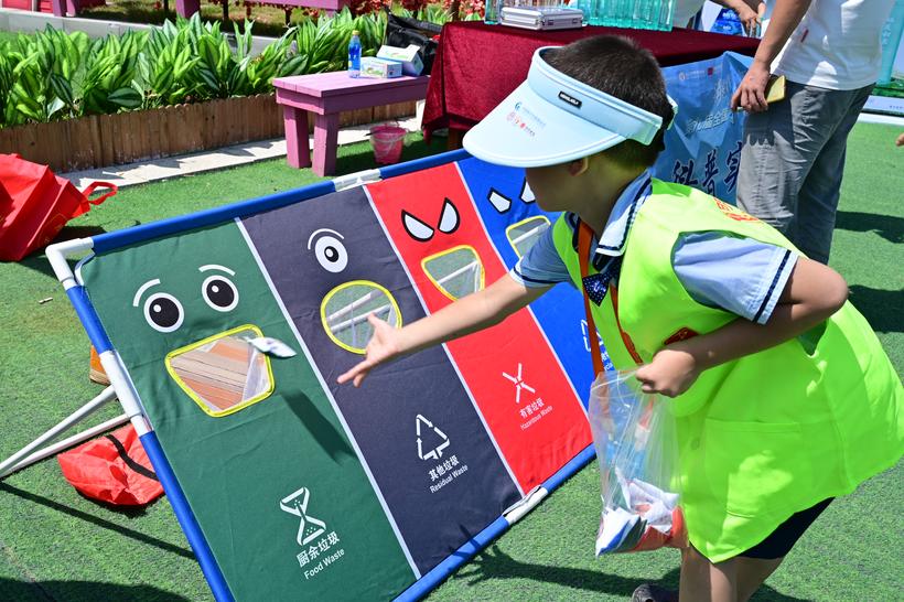 图为莆田少年志愿者体验垃圾分类小游戏