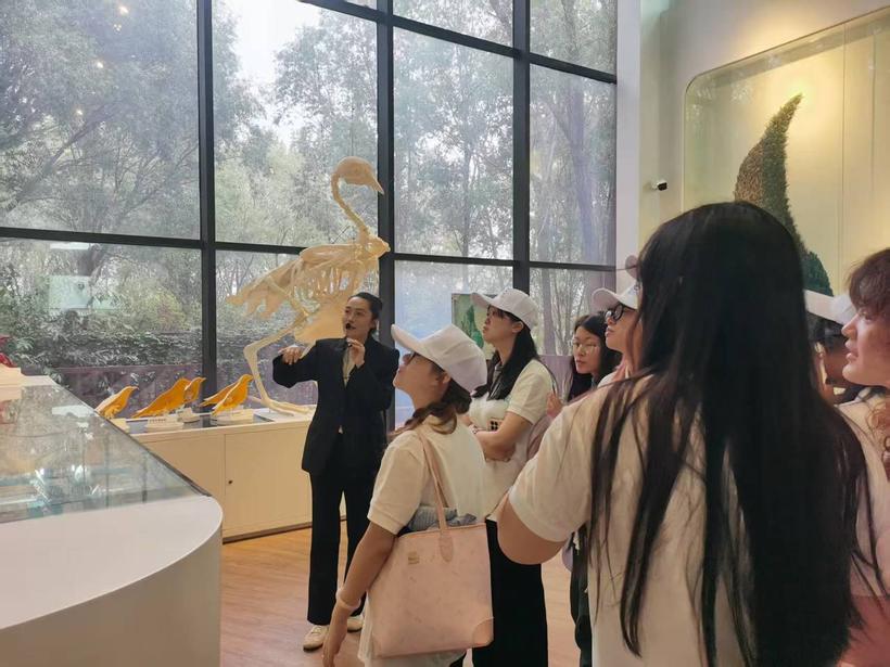 图为秦皇岛为大学生志愿者讲解北戴河海滩作为候鸟迁徙驿站的重要作用