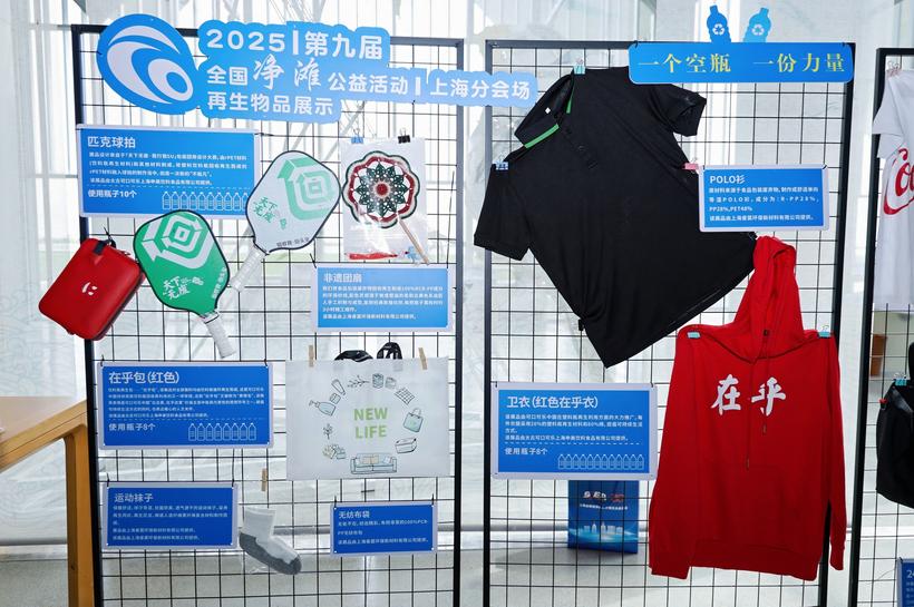 图为上海展示多种多样的塑料再生物品