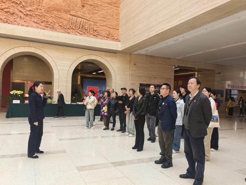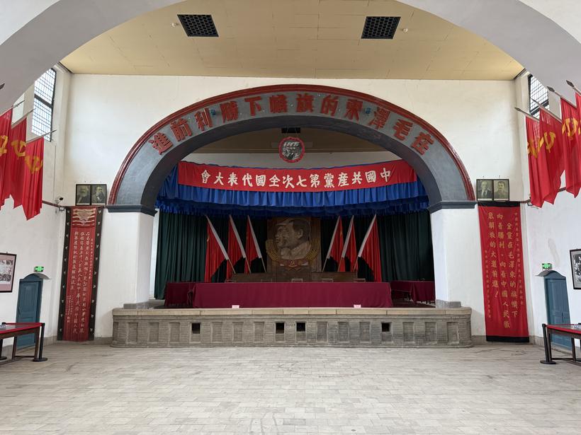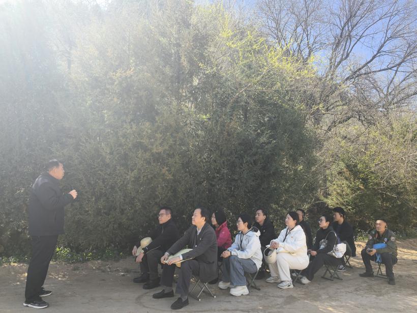 石桌犹刻风云痕,黄土深埋辩论声。4月15日上午,海洋基金会党支部首先参观了杨家岭领导人旧居。1946年8月6日,毛泽东在这里会见了美国记者安娜·路易斯·斯特朗,同她就国际国内形势作了重要谈话。在谈话中,毛泽东提出了“一切反动派都是纸老虎”的著名论断。随后,大家走进杨家岭中央大礼堂,这里的木制长椅依然保持着前低后高的原始布局。1945年4月23日至6月11日,中国共产党第七次全国代表大会在此召开。大会通过了新的《中国共产党章程》;选举产生了新一届中央委员会;形成了毛泽东思想,正式确立了毛泽东在中共党内不可动摇的领导地位。阳光穿过窗棂,在地面的青砖上投下几何光斑。海洋基金会党支部全体同志在此驻足,听着讲解员的讲解,大家重新回到了毛泽东作《愚公移山》闭幕词的现场。